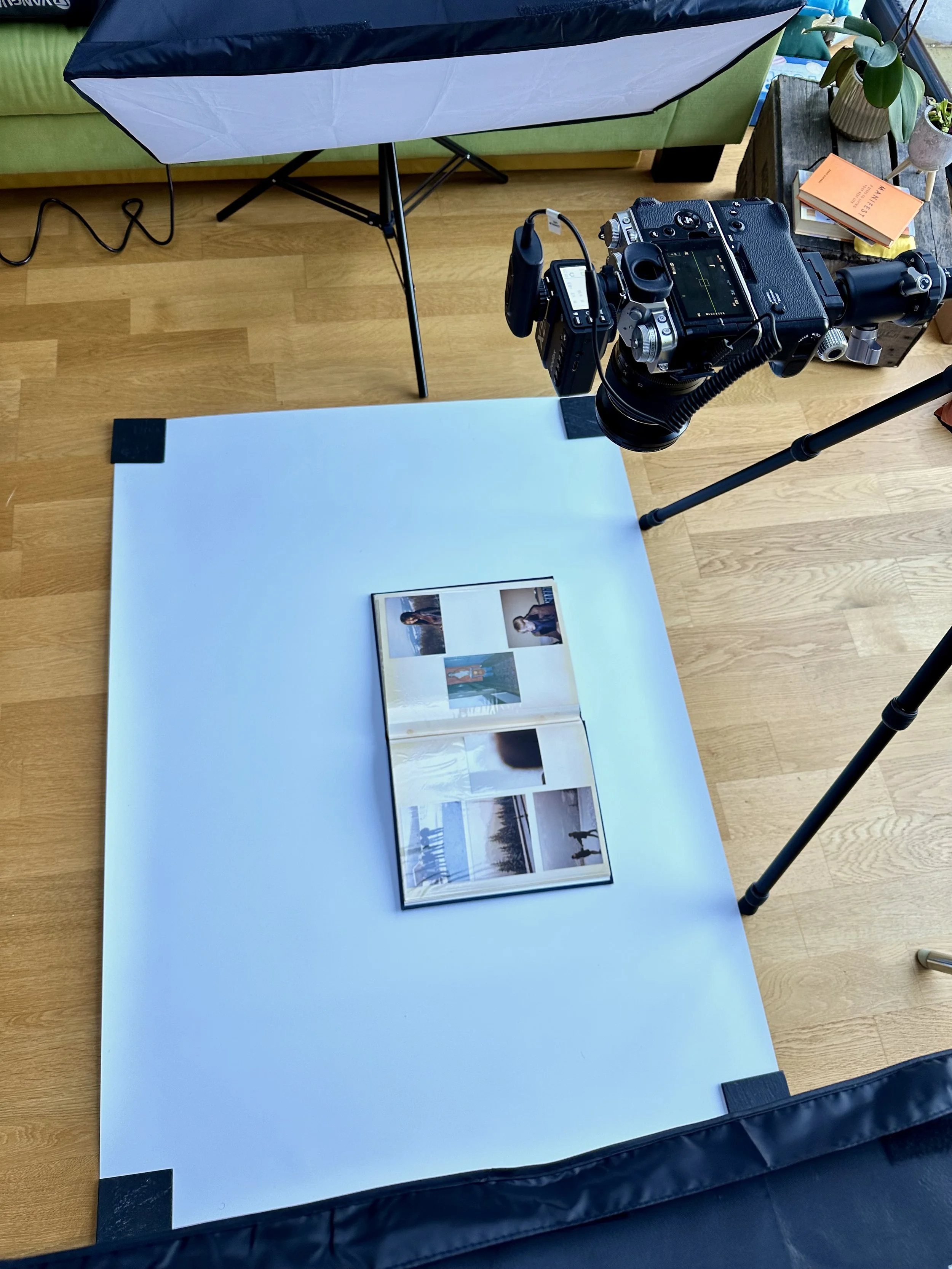 This set-up will work for books, albums but also other physical assets I might end up capturing. Although the tests took the best part of a day with a camera remote in my hand I managed to photograph the pages of 12 albums in the space of about an hour.